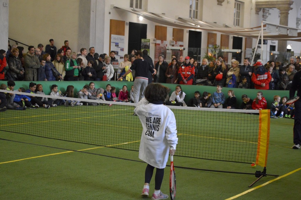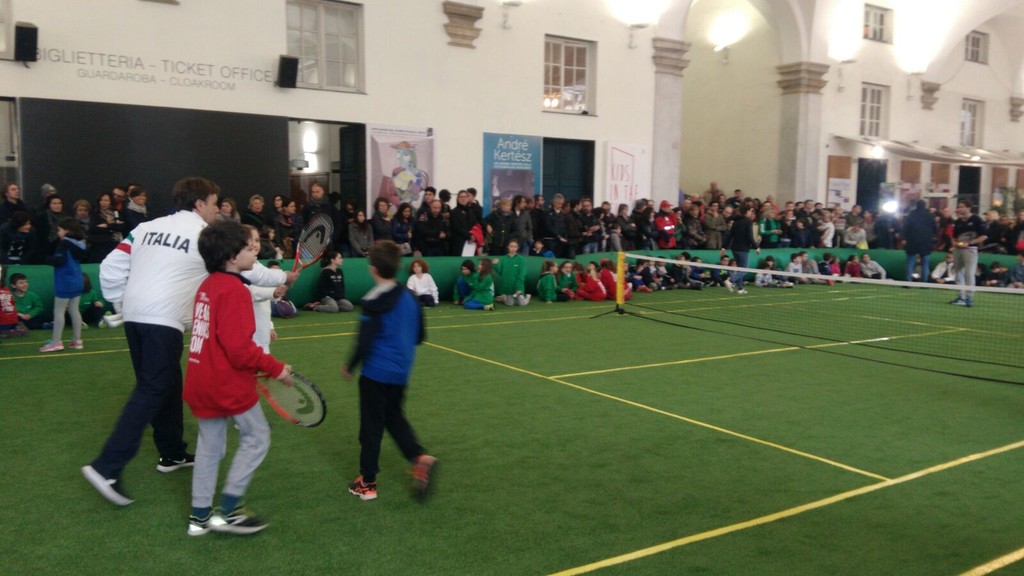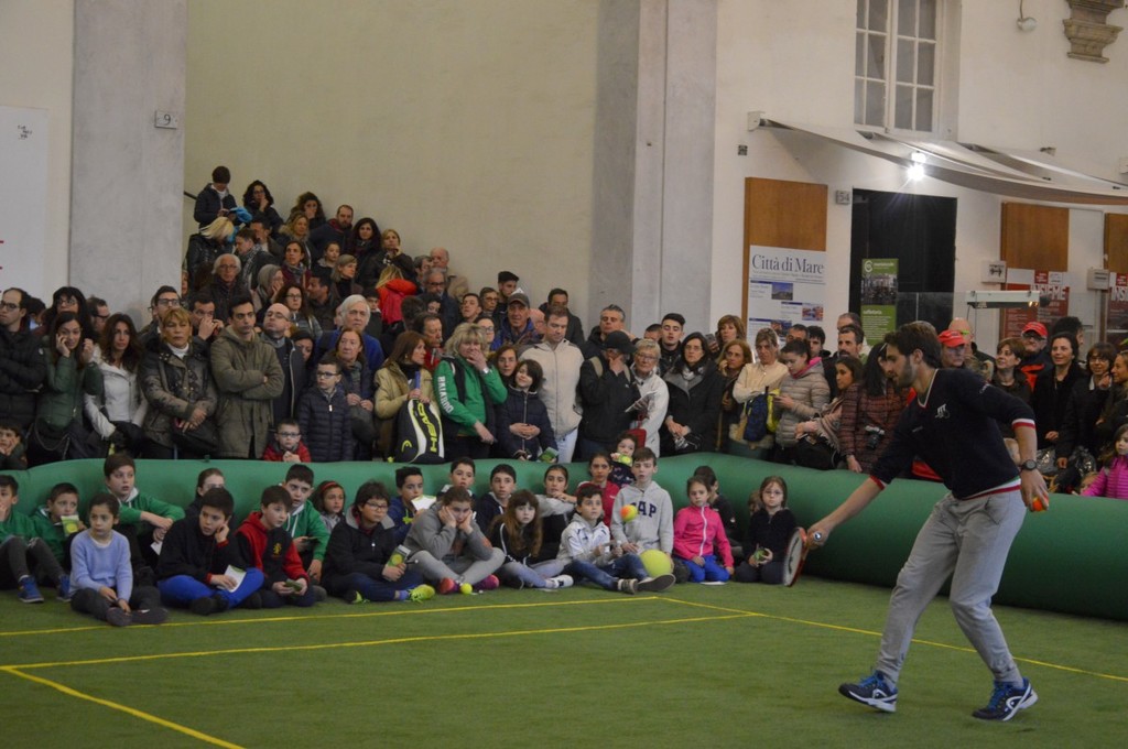 Tanti bimbi entusiasti per l'incontro con gli idoli del tennis, gli azzurri che saranno impegnati nella Coppa Davis, in programma dal 6 all'8 aprile nello stadio centrale "Beppe Croce" a Valletta Cambiaso, dove si terranno i quarti di finale che vedranno di fronte l'Italia e la Francia.