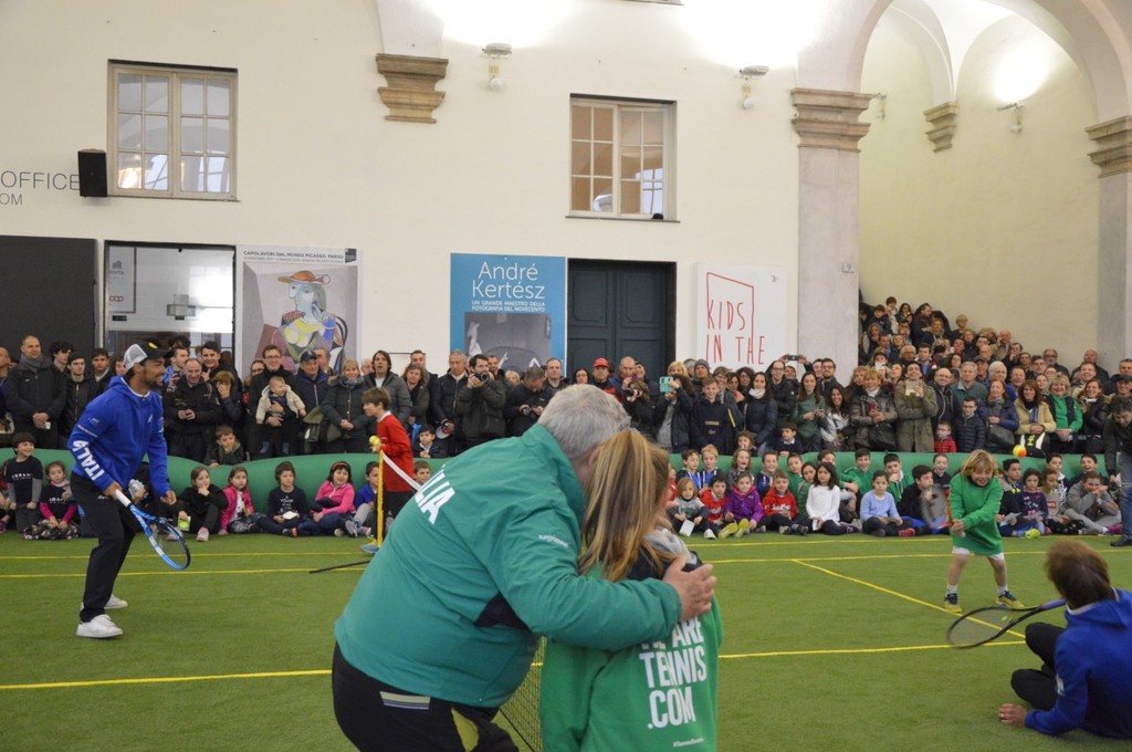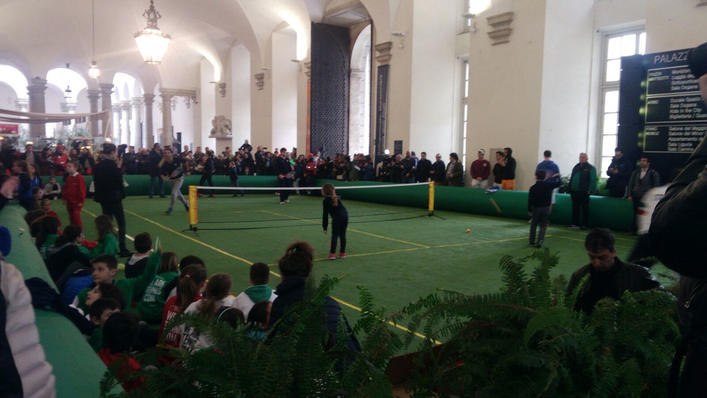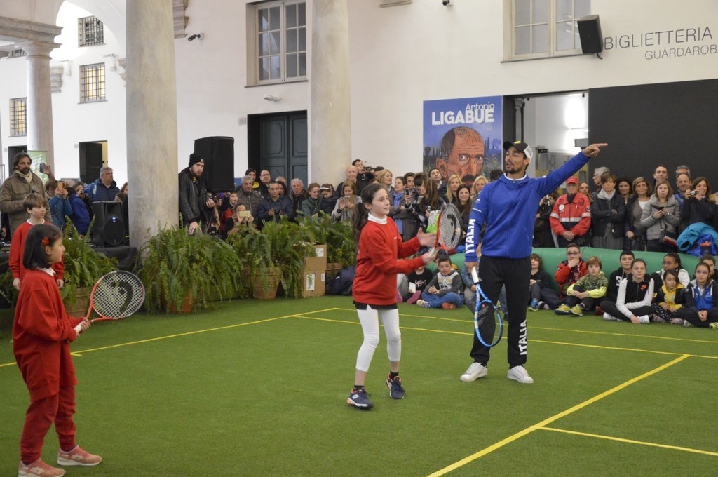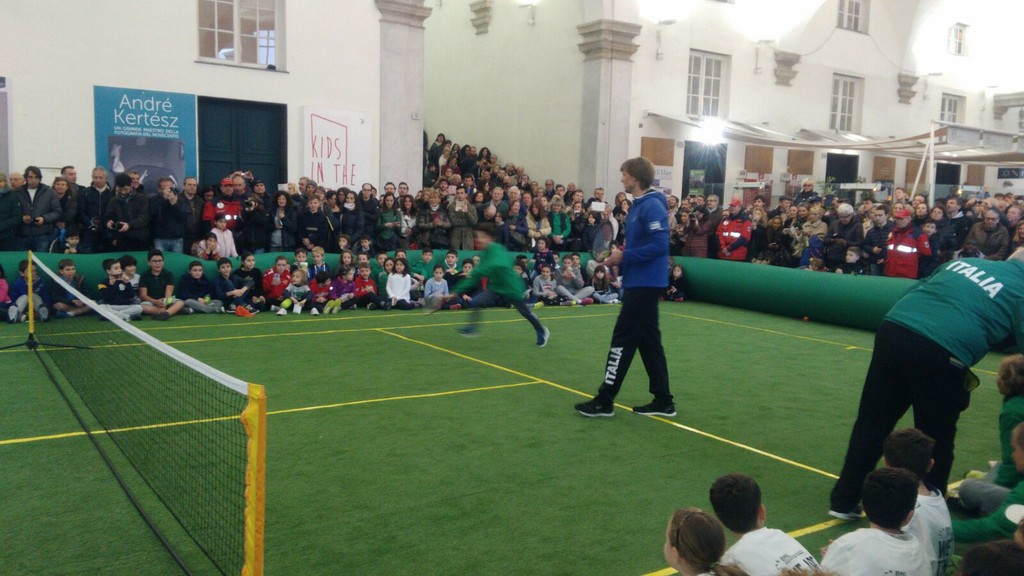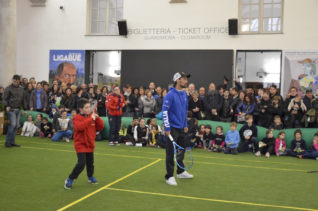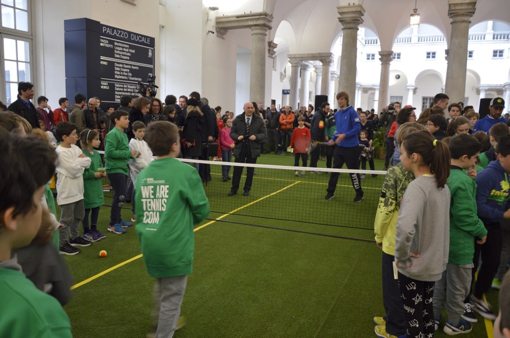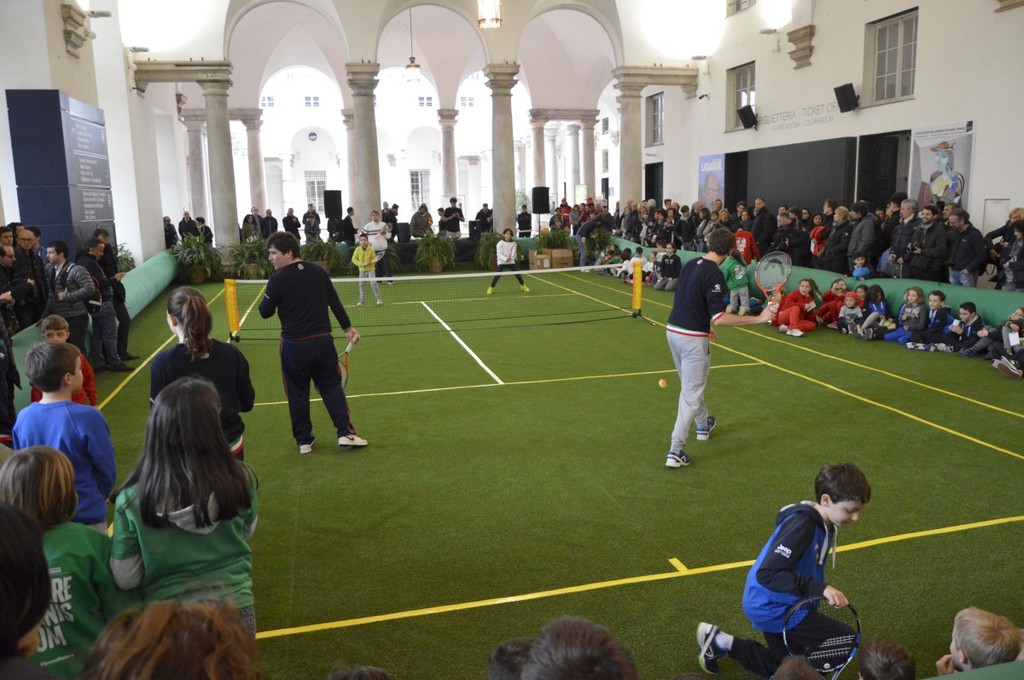 Il pomeriggio sotto il porticato di Palazzo Ducale è stato intenso: introdotti dai maestri della Federtennis, i piccoli atleti hanno palleggiato con i campioni sul campo in erba sintetica allestito per l'occasione (impossibile usare lo scenario di piazza De Ferrari per il maltempo). Dopo gli scambi, è stato il momento di selfie ed autografi.