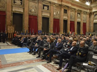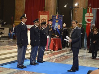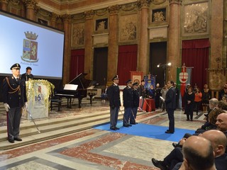 Cerimonia e consegna delle onorificenze a Palazzo Ducale, mentre le iniziative al Villaggio della Sicurezza continuano sotto la pioggia battente