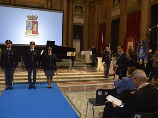 La Polizia ha celebrato i 166 anni dalla sua fondazione con una cerimonia a palazzo Ducale e con una serie di stand, ribattezzati Villaggio della Sicurezza, installati nelle piazze limitrofe.