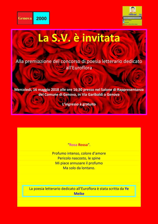 Le opere sono stati esposte il 21aprile, il 28 aprile e il 5 maggio nel Chiostro del Museo di S.Agostino, in Piazza Sarzano. Nello stesso pomeriggio verranno premiati i poeti e le poetesse che hanno partecipato al 21° Concorso Azzurra Liguria "Trofeo Agostino Zappaterra" . I due concorsi sono stati organizzati dall'Associazione Culturale Azzurra con il patrocinio del Municipio Centro Est ed erano dedicati all'Euroflora.
