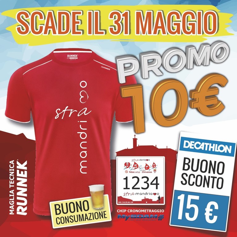 Terminata l'offerta PROMO, dal 1 al 8 giugno sarà ancora possibile iscriversi, ma al prezzo di 15€ sempre on-line o presso i punti iscrizione, poi le iscrizioni chiuderanno fino al weekend della gara.