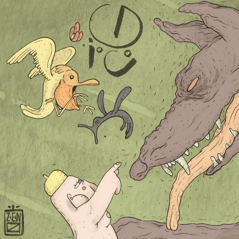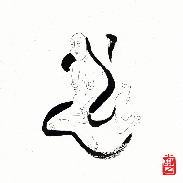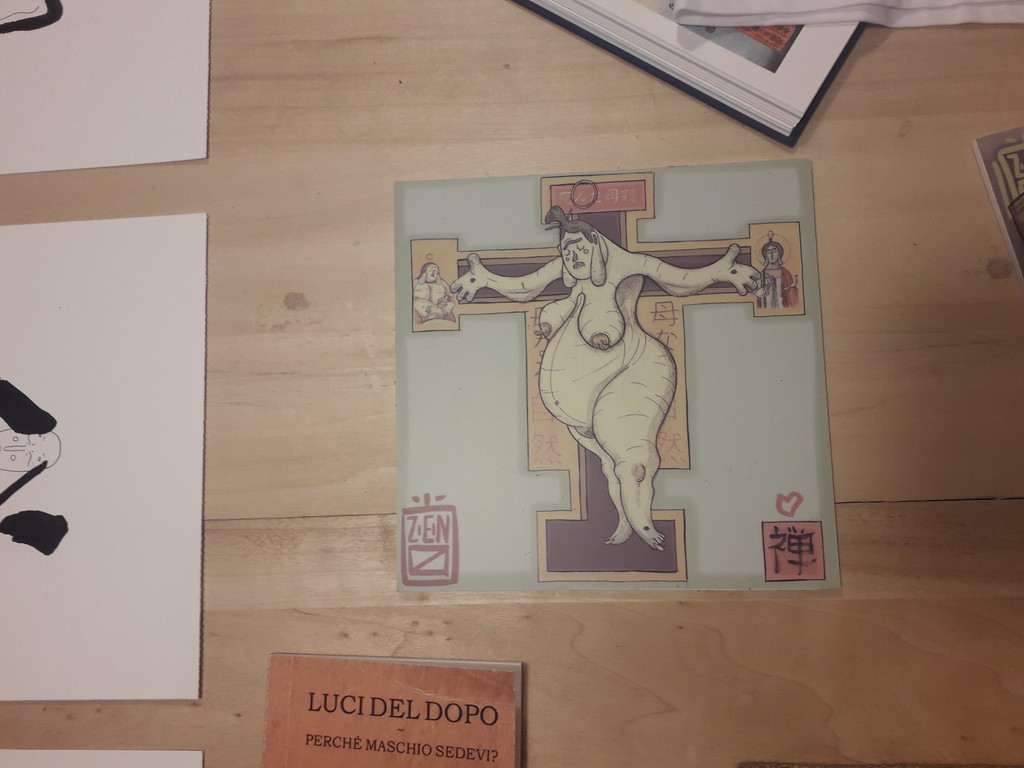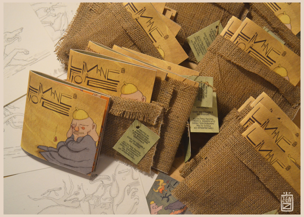 All’inizio mi occupavo di personaggi che erano tutti vegetali, e Zen Zero era un profeta dell’epopea dei tuberi e della frutta. C’erano, per esempio, le Albicoccole e i figli di Soia e così via. Le persone hanno iniziato a chiamarmi Zen Zero e poi ho fatto il logo, che funziona ed è diventato una sorta di brand. Rimanda molto allo Zen, ma con lo Zero diventa più “leggero”. Ho prodotto per la casa editrice Verticomics “Patata Wi-Fi”, che è un lavoro molto basato sullo spirituale, in quanto è la ricostruzione del Sutra, non su carta, ma su tessuto da srotolare, per rievocare una certa sensazione di antico. Ma in genere sono un po’ imprenditore di me stesso e ho bisogno di avere dei riscontri subito ai miei lavori, anche per questo autoproduco le mie storie.