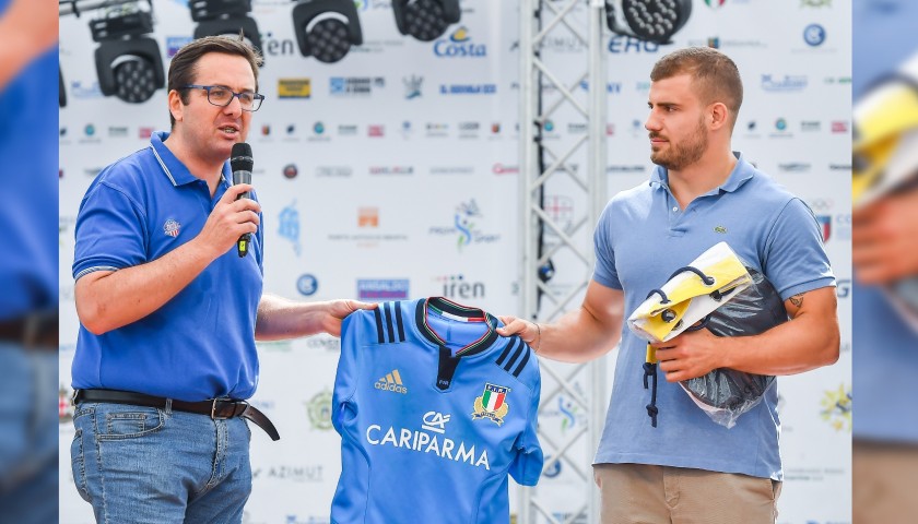 A schierarsi al fianco di Stelle nello Sport c’è anche il rugbista azzurro e ligure doc Tommaso Castello. Il cimelio all’asta per i prossimi sei giorni è la maglia della Nazionale italiana autografata e indossata da Castello durante un match del tour di giugno 2016, nel quale affrontò Stati Uniti, Canada e Argentina.
