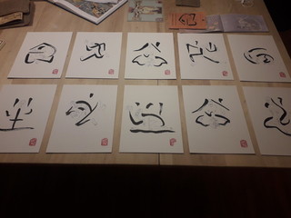 Sì, seguo le esposizioni di Uga, Unione Giovani Artisti, del cui direttivo faccio parte e come associazione proponiamo mostre e anche io ho esposto un anno fa a Sestri Levante. Da Tiger sto esponendo “Limone e Fiore”, con le illustrazioni realizzate, invece che su tavola in cartaceo, in tessuto, che riporta a un testo più “sacro”, ma intanto sto progettando una mostra su tutti gli ideogrammi.