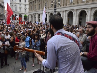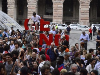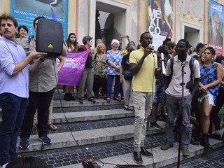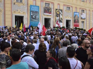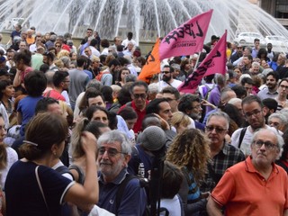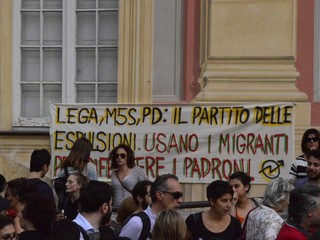In piazza tante bandiere dei partiti della sinistra, dell'associazionismo laico e cattolico, ma anche centri sociali, migranti, militanti della Fiom e semplici cittadini. Intorno alle 18.30 rappresentanti della comunità senegalese hanno parlato ai manifestanti con un microfono, ricordando l'amara condizione di chi è costretto ad abbandonare il proprio paese per arrivare in Italia, e sottolineando l'importanza di riscoprire l'accoglienza nei confronti di chi cerca un futuro migliore, visto che le politiche dell'attuale governo "sembrano andare in direzione opposta". La manifestazione si è conclusa con l'esibizione lampo di un duo musicale e con "Bella Ciao" cantata in coro.