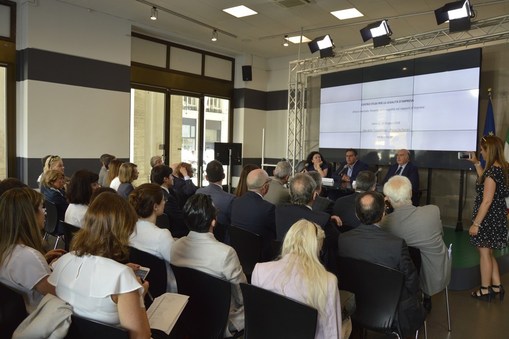 Lunedì 18 giugno si è tenuto presso la sala Trasparenza della Regione Liguria si è svolto il seminario "Etica e mercato. Rispetto della Legalità nei rapporti d’impresa", organizzato dalla nuova associazione "Centro Studi per la Legalità d'Impresa", che verrà presentata nel corso dell'evento. In apertura dell'iniziativa il presidente della Regione Giovanni Toti ha portato i suoi saluti ai partecipanti e ai soggetti organizzatori.