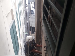Edilizia acrobatica: operaio in azione nei vicoli