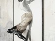 Ho iniziato con Ernesto Bayter con la mostra sui migranti, che era un gioco: lui dipingeva a olio, in modo classico, i migranti, lavorando su foglia oro come coperta termica, mentre io rappresentavo chi avrebbero incontrato qua: figure di persone tristi, simulate con finto marmo, poco elastiche quindi, come un muro. Poi ci sono state varie collettive con altri artisti Nicola Villa, Carlos Estrada, ma anche di fuori, di Alessandria e Torino. La prossima mostra dovrebbe essere a ottobre e sarà una mostra fotografica.