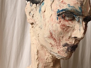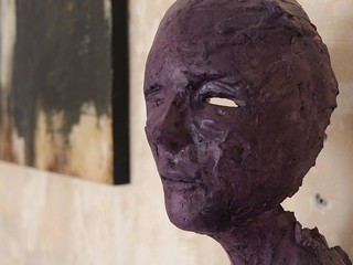 Ho iniziato con Ernesto Bayter con la mostra sui migranti, che era un gioco: lui dipingeva a olio, in modo classico, i migranti, lavorando su foglia oro come coperta termica, mentre io rappresentavo chi avrebbero incontrato qua: figure di persone tristi, simulate con finto marmo, poco elastiche quindi, come un muro. Poi ci sono state varie collettive con altri artisti Nicola Villa, Carlos Estrada, ma anche di fuori, di Alessandria e Torino. La prossima mostra dovrebbe essere a ottobre e sarà una mostra fotografica.