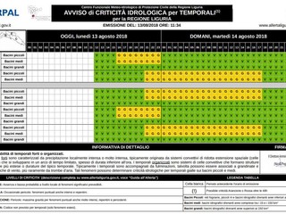 La Protezione civile regionale ha diffuso l'Allerta meteo gialla per temporali per i bacini piccoli e medi, emanata da ARPAL con i seguenti orari: