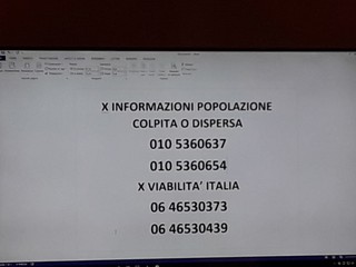 Il punto sulla situazione 35 morti, 11 feriti. Ricerche in corso. Attivati numeri per informazioni su dispersi e circolazione stradale.