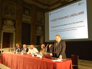 Si è aperto con 43 secondi di raccoglimento, uno per ciascuna delle vittime, l'incontro organizzato presso la sala del maggior Consiglio di palazzo Ducale dall'Ordine degli Ingegneri di Genova, intitolato "Ponte Morandi... 20 giorni dopo".