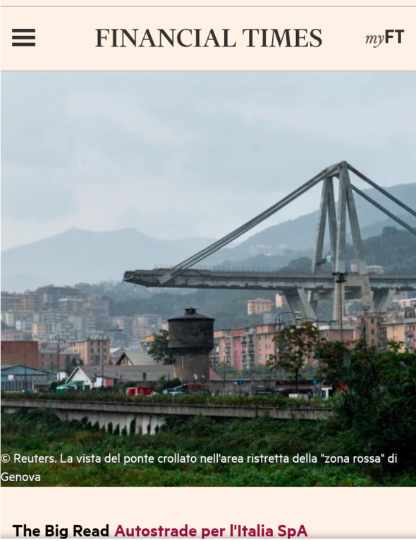 Anche il Financial Times si occupa di Genova con un approfondimento sul crollo di ponte Morandi e le sue ricadute politiche.