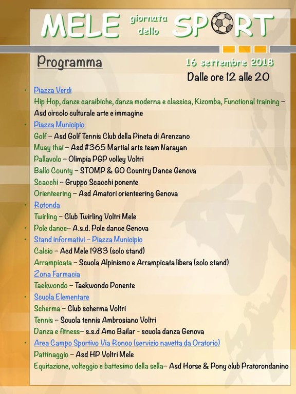 Mele, ventiquattro discipline scendono in piazza