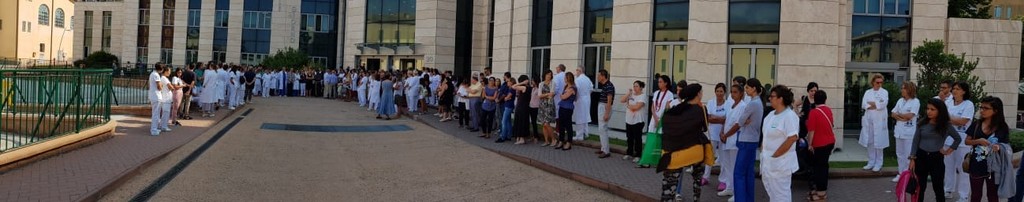 Oltre un centinaio tra medici infermieri e impiegati dell'Istituto Giannina Gaslini, insieme ai vertici aziendali e ad alcune famiglie di utenti, si sono incontrati oggi per rispettare insieme un minuto di silenzio in ricordo della tragedia che ha colpito la città di Genova il 14 agosto.