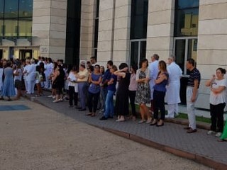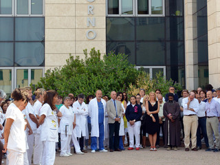 Oltre un centinaio tra medici infermieri e impiegati dell'Istituto Giannina Gaslini, insieme ai vertici aziendali e ad alcune famiglie di utenti, si sono incontrati oggi per rispettare insieme un minuto di silenzio in ricordo della tragedia che ha colpito la città di Genova il 14 agosto.