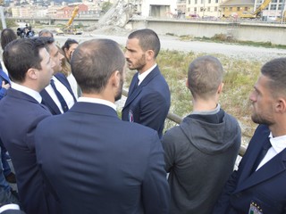 I calciatori della Nazionale guidati dal ct Roberto Mancini hanno deposto una corona di fiori nei pressi del Ponte Morandi di Genova, tragicamente crollato nella sciagura dello scorso 14 agosto. Il pullman si è fermato a trecento metri dai monconi del viadotto, conosciuto dai genovesi come il "ponte di Brooklyn", dove hanno perso la vita 43 persone. In testa alla delegazione Mattia Perin, ex portiere del Genoa, e Gianluca Caprari, attaccante della Sampdoria. E al loro fianco Leonardo Bonucci e Giorgio Chiellini.