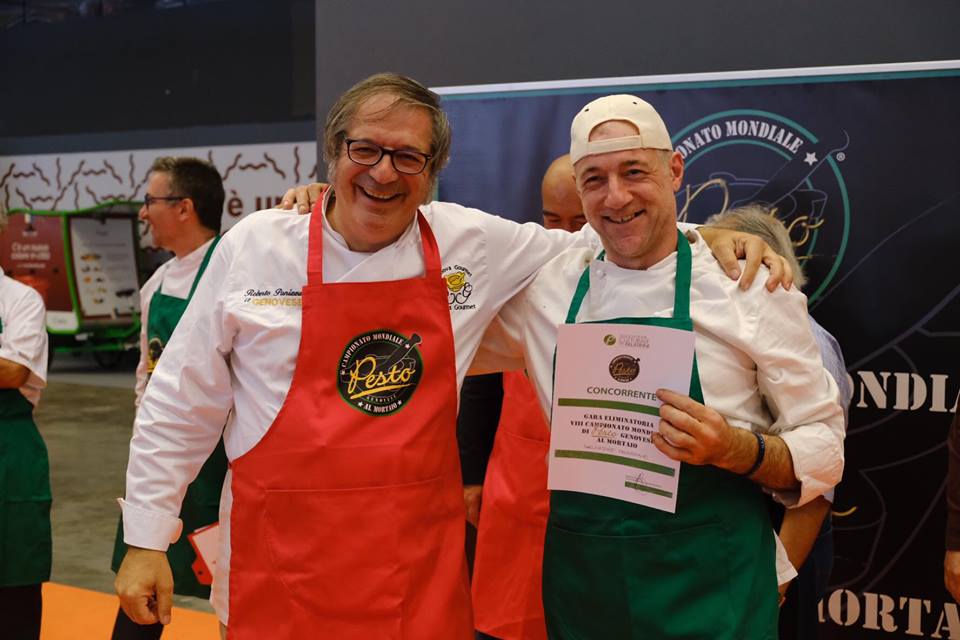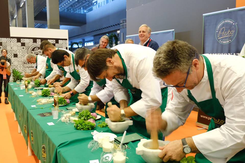 RistorExpo è anche gara eliminatoria valida per la qualificazione all’8° Campionato del mondo di pesto al mortaio – partita alle 16 in punto, proseguirà domani alla stessa ora – grande evento diretto da Roberto Panizza all’interno della manifestazione che ha visto Salvatore Perrone accedere di diritto alle finali di Genova 2020. Tra i partecipanti illustri, quali gli Chef Ivano Ricchebono e Matteo Losio, anche Margherita Olivieri – abile e simpatica Chef di Santa Margherita Ligure che ha partecipato, lo scorso anno, aHell’s Kicthen diretto da Carlo Cracco – Renato Vergani, Luca Collami, Paolo Ferralasco, Umberto Squarzati e Maurizio Pinto.