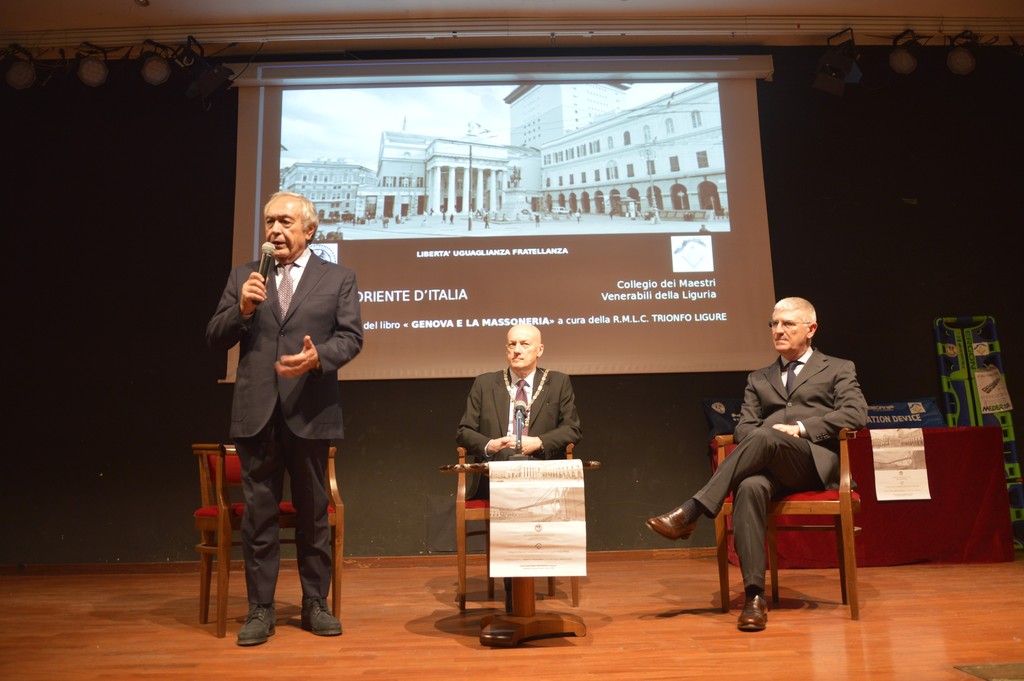 Nella Sala Montale del Carlo Felice, insieme ai rappresentanti delle oltre quaranta logge del territorio ligure, molti spettatori e gli esponenti del soccorso sanitario genovese. Il presidente del GOI Liguria, Carlo Alberto Melani, sottolinea: "Questo volume edito dalla De Ferrari, quindi una casa editrice genovese, raccoglie lo stradario con i nomi di massoni che hanno fatto la storia: da Fermi a Fleming, da Pascoli a Quasimodo. Tante figure che spesso non si conoscono come correlate alla Massoneria o che, se si conoscono, vengono dimenticate".
