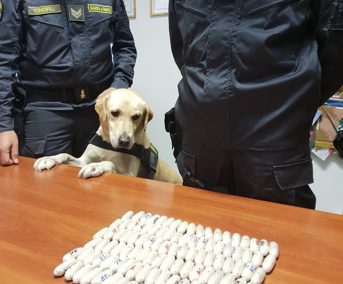 Le unità cinofile della guardia di finanzia hanno intercettato due distinte spedizioni di stupefacenti a Ventimiglia: 1,1 kg di eroina sono stati intercettati su un treno proveniente da Nizza, 6 kg di "erba" sono stati scoperti su un pullman proveniente dalla Spagna