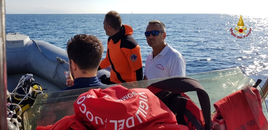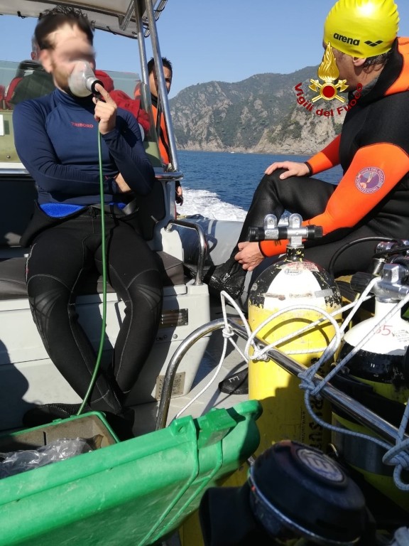 Sommozzatori del vigili del fuoco soccorrono sub in emergenza a Portofino