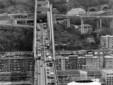 Vedi quei mostri di cemento sopra la testa degli uomini e non puoi far a meno di pensare a quanto quegli uomini abbiano osato, e poi dimenticato, trascurato, ignorato. C’è il grosso peso della responsabilità, oltre a quello del calcestruzzo armato. E viene tutto fuori in queste immagini. Difatti la più evocativa, non a caso, è stata scattata su un altro viadotto. E’ ancora in piedi. Passa sotto al cimitero di Staglieno. L’immensa architettura dell’A12 si staglia sopra le tombe del Campo 57, mentre una bisarca transita in direzione Levante. C’è il tutto e il niente, in uno scatto di trent’anni fa.