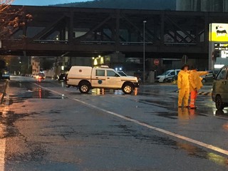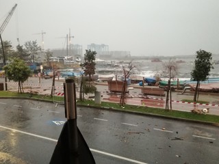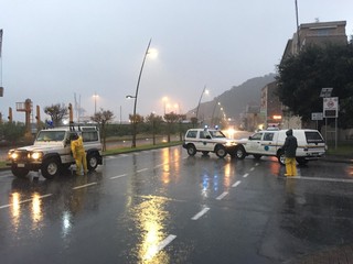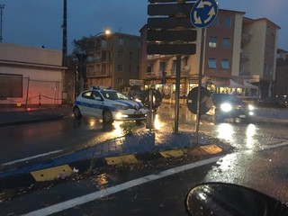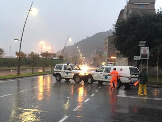 I volontari e gli agenti vadesi sono sul posto per limitare i danni della forte mareggiata. Chiuso il tratto di Aurelia in direzione Bergeggi dalla rotonda di via Nizza