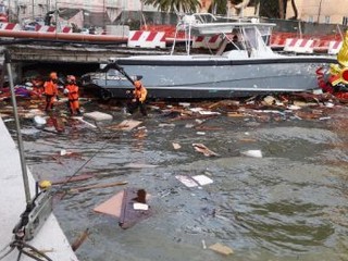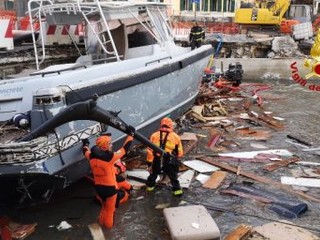 All'opera dopo il disastro della mareggiata e il crollo della diga portuale