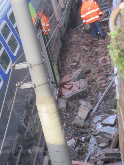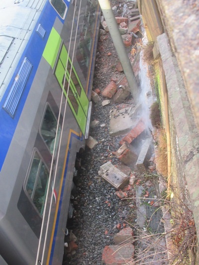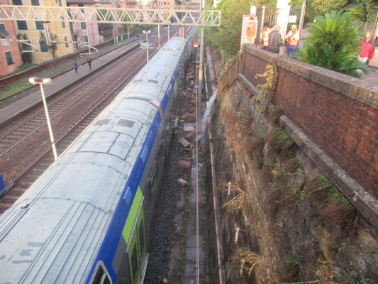 La causa del deragliamento del treno regionale è il cedimento di un parapetto a causa della pioggia. Treni in forte ritardo e cancellati