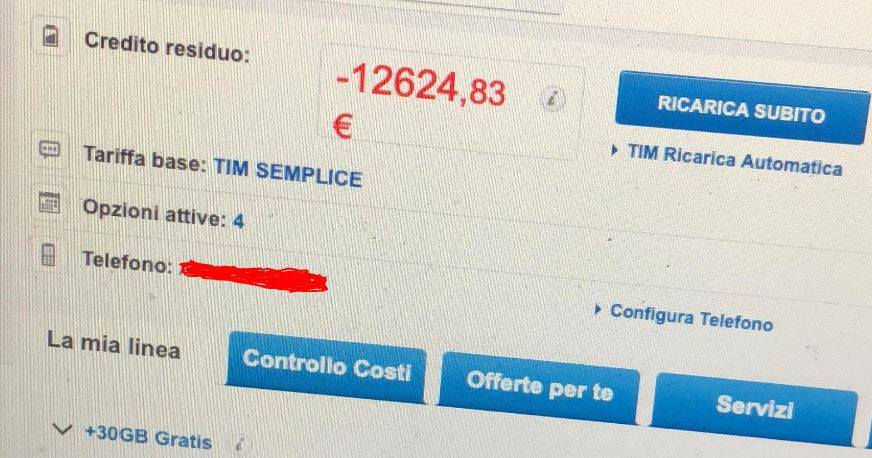 Credito in rosso di migliaia di euro: utenti Tim impossibilitati a utilizzare il cellulare
