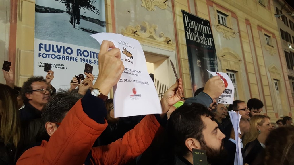 Anche la stampa locale oggi è scesa in piazza per manifestare in difesa del diritto all'informazione e contro le parole del Vice Premier Di Maio, che ha definito i giornalisti "infimi sciacalli". Quindi nel pomeriggio, tesserino alla mano, centinaia di operatori della comunicazione, e non solo, hanno partecipato al flash-mob #GiùLeManiDallInformazione organizzato dalla Federazione Nazionale Stampa Italiana (Fnsi). E, dopo essersi riuniti davanti al palazzo della Prefettura, al grido di "Siamo tutti infimi sciacalli", hanno sfilato in corteo fino a Piazza De Ferrari.