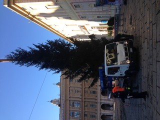 Sono iniziate questa mattina le operazioni di sistemazione e consolidamento dell’albero di Natale di piazza De Ferrari, arrivato dal Parco Naturale Regionale dell’Aveto.