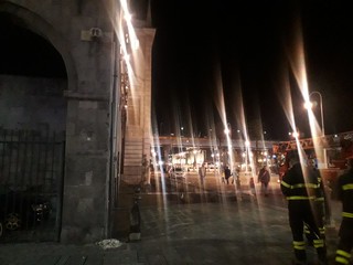 Intervento dei Vigili del Fuoco per la caduta di calcinacci dal lato di nord-ovest del palazzo. Non ci sono feriti (FOTO)