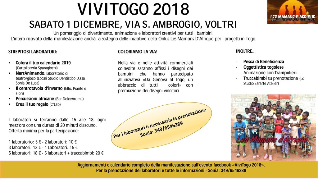 Sabato 1 dicembre, dalle ore 15 alle ore 18, si terrà a Voltri, in Via Sant’Ambrogio, la prima edizione di ViviTogo 2018.