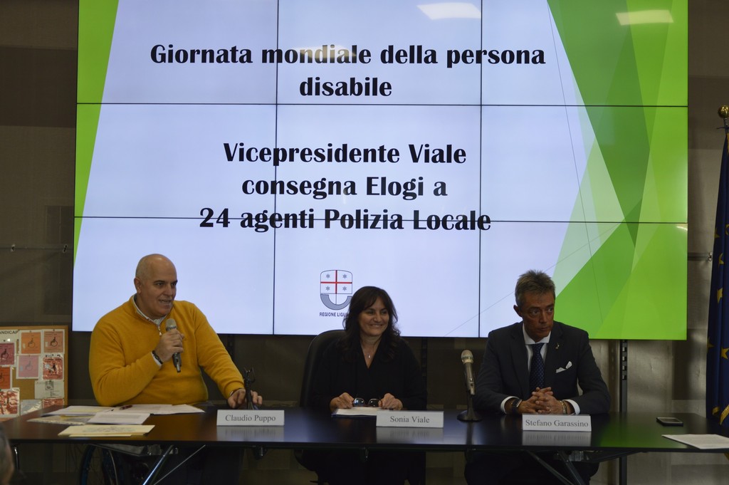 In occasione della Giornata mondiale delle persone disabili, anche quest’anno Regione Liguria elogia gli agenti della Polizia Locale che si sono distinti nella tutela dei loro diritti, facendo rispettare le normative vigenti. I riconoscimenti sono stati consegnati dalla vicepresidente e assessore alla Sanità e Politiche sociali di Regione Liguria Sonia Viale a 24 agenti delle Polizie locali di Genova (16 agenti), La Spezia (4 agenti), Savona (2 agenti) e Sanremo (2 agenti) che hanno vigilato sul corretto utilizzo del Cude-Contrassegno unificato disabili europeo, sui posteggi dedicati, sugli attraversamenti pedonali e, più in generale, sulle strutture che garantiscono la mobilità delle persone disabili e di tutti i cittadini.