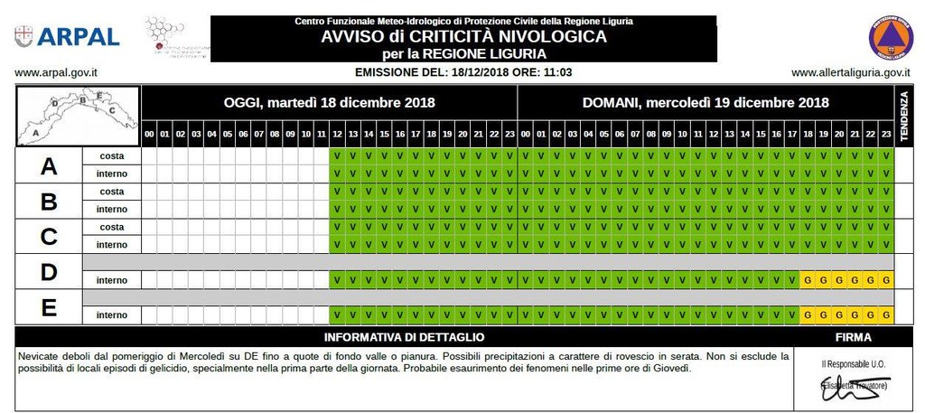 La persistenza di temperature basse nelle zone interne e il carico di umidità apportato dal fronte potrebbero dare origine a precipitazioni nevose