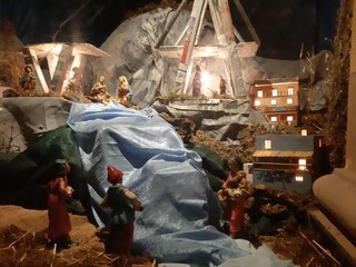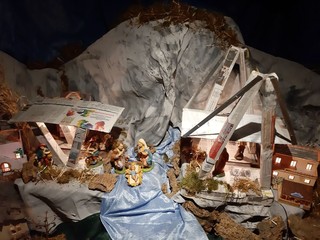 "Dipende dal punto di vista. Il ponte è pace e ricostruzione. Gesù ogni anno cerca una nuova mangiatoia dove nascere. Lì tutti si trasformano con la luce e il calore" questa la frase che campeggia sul presepe, scritta con le lettere ritagliate dai giornali.