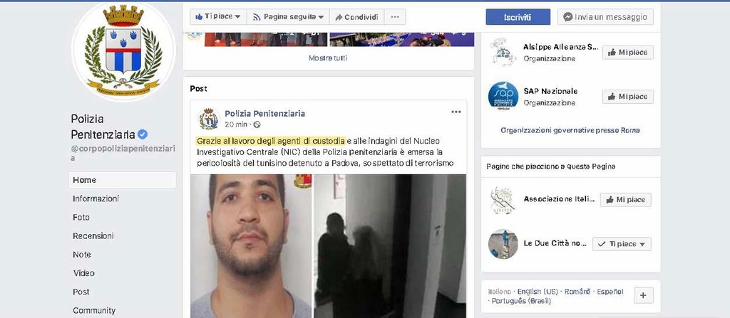 “Siamo al ridicolo! Per il profilo ufficiale del Corpo di Polizia Penitenziaria su Facebook, che da notizia della accertata pericolosità di un detenuto del carcere di Padova sospettato di terrorismo, siamo tornati – c’è scritto testualmente – “Agenti di Custodia”. Cioè, neppure al Ministero della Giustizia ed al Dipartimento dell’Amministrazione Penitenziaria sanno come ci chiamiamo… Ma ci rendiamo conto dell’assurdità?”.