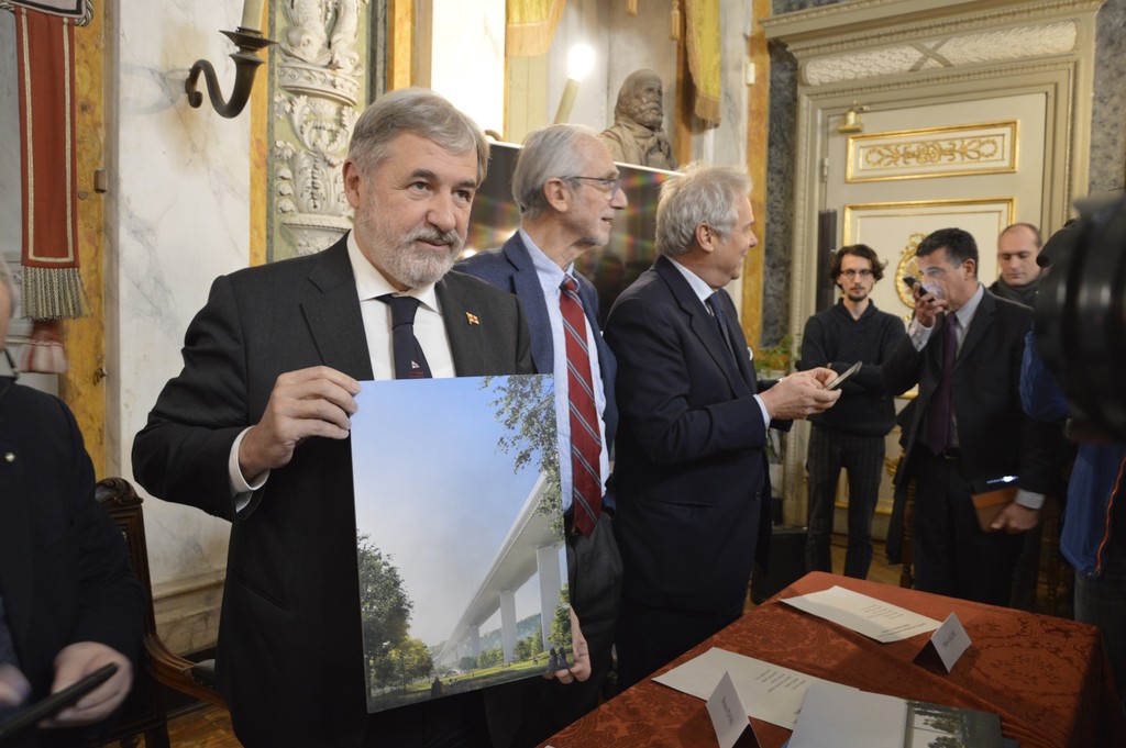 Firmato oggi il contratto per la demolizione e ricostruzione del viadotto sul Polcevera. Il commissario Bucci: "Il 31 marzo resta la data in cui inizia la ricostruzione, che avverrà contemporaneamente ai lavori di demolizione già iniziati"