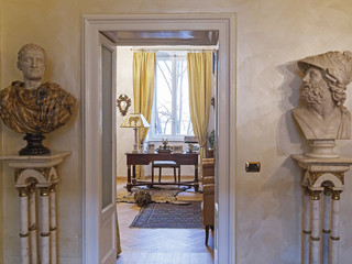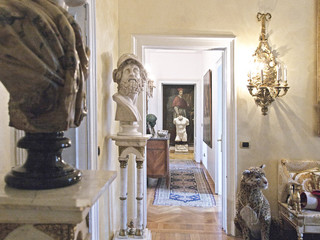 Il classico sul classico è un senza tempo, una certezza, come il moderno sul moderno. Ma secondo me il valore aggiunto di un ambiente che mescola antico e moderno è dato proprio dall’arte e dall’oggetto di design. Infatti quello che va di più è l’unione tra lo stile un po’ parigino con boiserie ed elementi moderni, ma anche con opere d’arte classica. È il giusto mix tra elementi più estrosi e basi architettoniche più rifinite e particolareggiate. E quello che fa molto e che valorizza l’opera d’arte, anche nelle case del nostro Centro storico, è avere la personalizzazione degli arredi con le rifiniture realizzate da artigiani, come la boiserie fatta da falegnami: c’è sempre una ricerca sull’opera d’arte che segue il filo della casa, cosa che si perde un po’ ora col minimalismo.