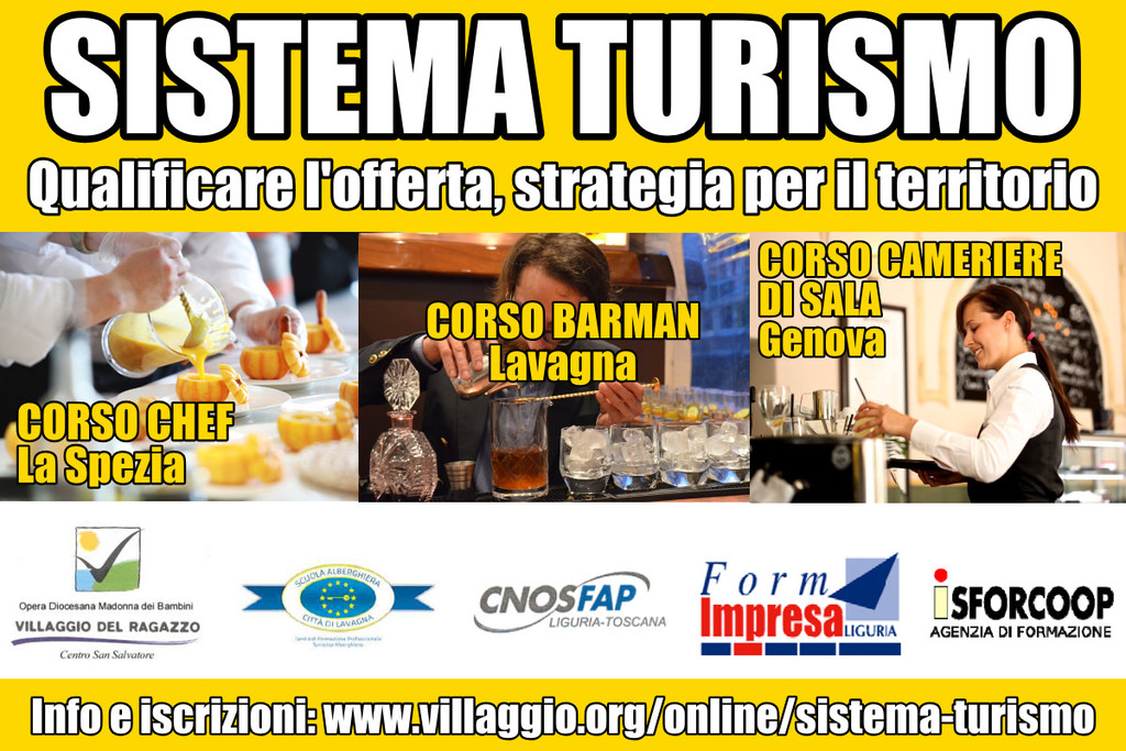La formazione delle figure professionali proposte da Sistema Turismo si pone in continuità con gli interventi formativi già sviluppati in questo settore nell’ultimo quinquennio: “Progetto Levante” nel Tigullio e “Sistema Liguria: Work in Blue” a valenza regionale (appena concluso), che hanno portato esiti assunzionali molto significativi, con percentuali in alcuni casi superiori all’80% degli allievi qualificati. Per tutte le informazioni sui corsi e le modalità d'iscrizione è possibile consultare questo link.