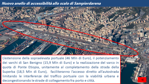 Un piano articolato di interventi, che riguardano la logistica, la portualità e le attività economiche dal Levante al Ponente cittadini per 1,06 miliardi di euro, è stato presentato oggi presso la Sala Trasparenza della Regione Liguria dal viceministro ai Trasporti e alle Infrastrutture Edoardo Rixi, dal presidente della Regione Toti, dal sindaco Bucci e dal presidente dell'Autorità di sistema portuale Signorini.