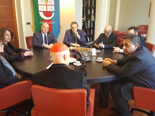 Oggi il cardinale di Genova Angelo Bagnasco si è recato nel palazzo della Regione Liguria per restituire la visita natalizia del governatore Giovanni Toti. Un incontro a cui hanno preso parte anche gli assessori della Giunta regionale incentrato sulle prospettive della città e della regione soprattutto dopo l’emergenza di ponte Morandi.