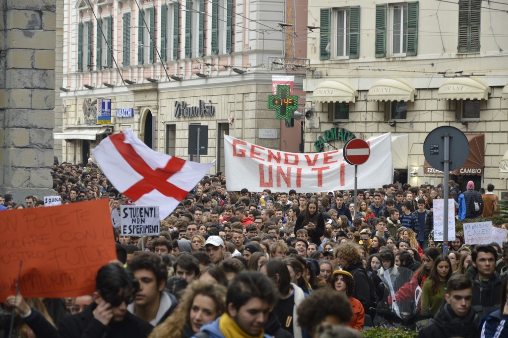 Il corteo è partito alle 9.30 da Brignole, e ha sfilato fino agli uffici del provveditorato in via Assarotti; una delegazione di studenti è stata ricevuta dal personale del Ministero (VIDEO e FOTO)