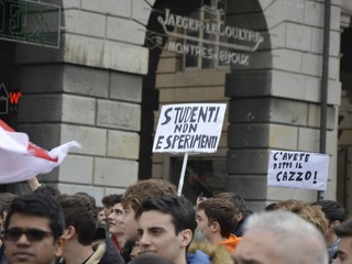 Il corteo è partito alle 9.30 da Brignole, e ha sfilato fino agli uffici del provveditorato in via Assarotti; una delegazione di studenti è stata ricevuta dal personale del Ministero (VIDEO e FOTO)