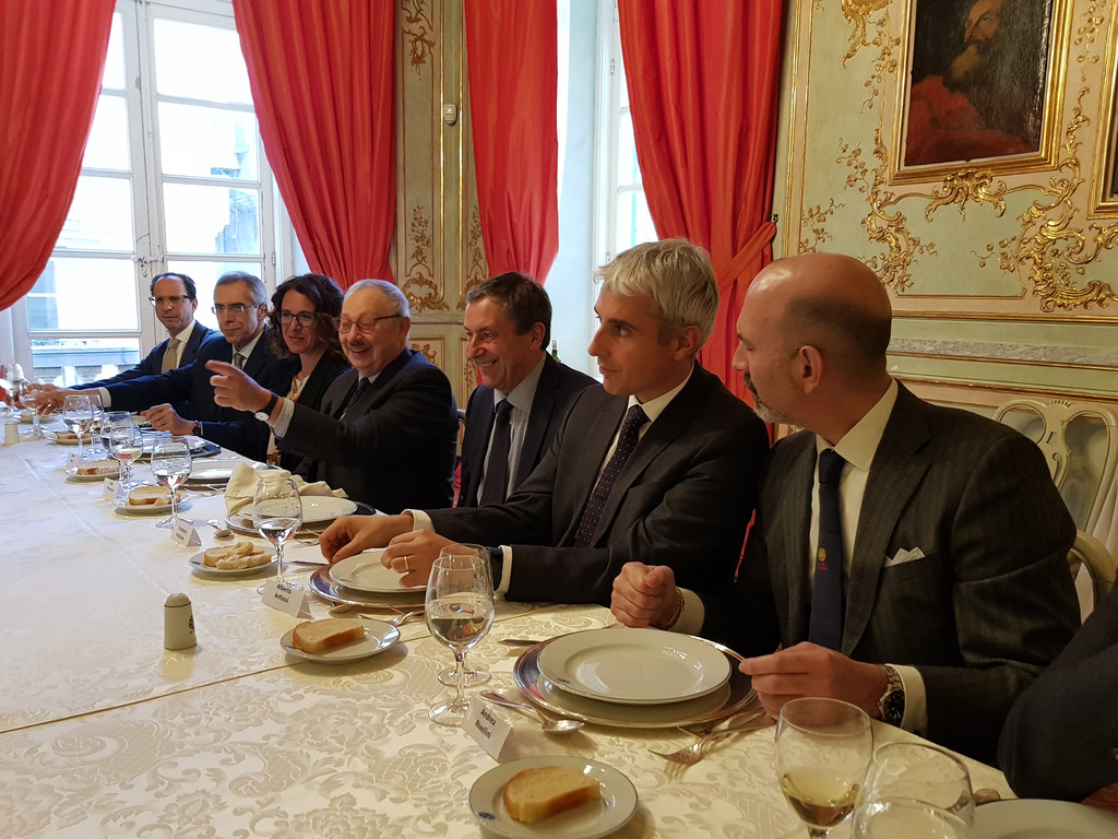 In occasione della giornata genovese dei vertici della Compagnia di San Paolo, la Camera di Commercio ha organizzato, al circolo Tunnel, un incontro con le istituzioni locali. Al tavolo allestito nella sala quadreria di Palazzo Doria Spinola hanno partecipato, per la Compagnia, il presidente Francesco Profumo, il segretario generale Alberto Anfossi e i rappresentanti del territorio Roberto Timossi, Giovanni Calvini e Andrea Rivellini. In rappresentanza della Regione c’erano l’assessore Ilaria Cavo e il segretario generale Pier Paolo Giampellegrini, per il Comune il sindaco Marco Bucci con gli assessori Barbara Grosso e Giancarlo Vinacci, per l’Autorità di sistema portuale il segretario generale Marco Sanguineri e per la Camera di Commercio il presidente Luigi Attanasio e il segretario generale Maurizio Caviglia. Al tavolo anche il presidente della Fondazione Carige Paolo Momigliano e quello dell’Aeroporto Paolo Odone. Si è anche parlato di università, d’intesa con il Magnifico Rettore dell’Università di Genova, oggi assente giustificato, con buone prospettive di collaborazione.