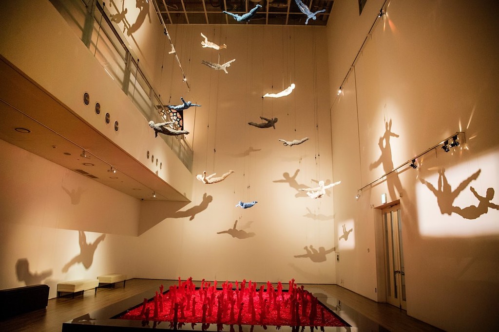 E in questa sezione anche la maestosa installazione denominata Division: tante mani che escono da un fiume rosso, protese verso un volo di corpi. Contrapposizione di anime inferno/paradiso?! Forse…al pubblico libera interpretazione.
