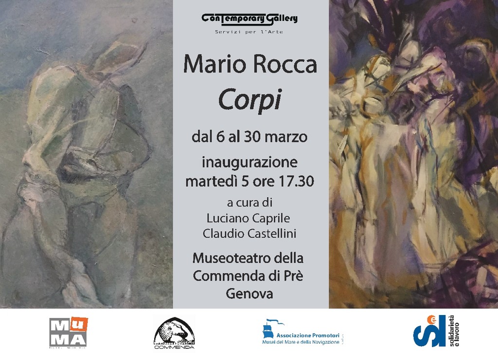 Dal 6 al 30 marzo il Museoteatro della Commenda ospita la mostra “CORPI” personale di Mario Rocca, curata da Luciano Caprile e Claudio Castellini. Trenta pitture dell’artista chiavarese, affermato pittore, incisore e scenografo, sul tema della figura umana. Corpi dagli anni Settanta ad oggi, in perenne enigmatica trasformazione e dissolvenza spaziale. Una continua aggregazione di forme che si sciolgono e si rinnovano in un dinamico dissolvimento.