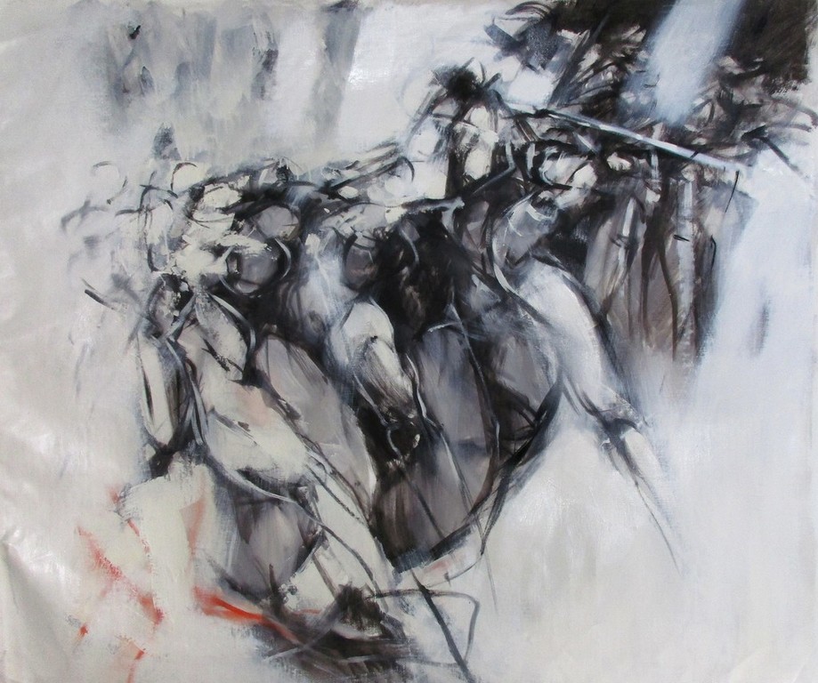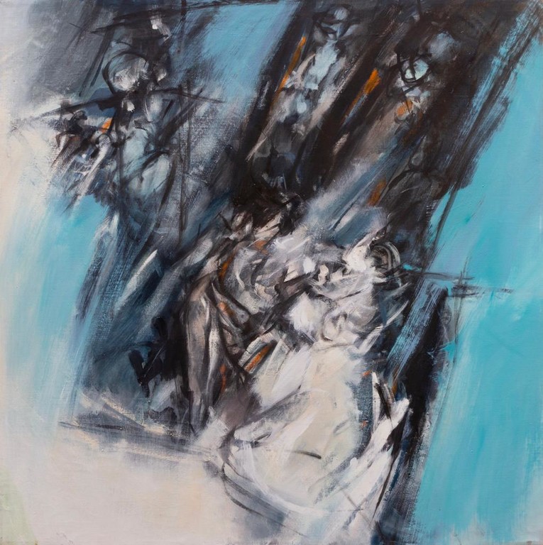 Mario Rocca riesce a formulare il fluire dei sentimenti e delle emozioni con determinata consapevolezza attraverso il movimento e la trasformazione dei corpi. Da vedere “Folla”, un dipinto del 2018, che rappresenta dei corpi in continua, frantumata lotta con se stessi e col mondo alla conquista di un’agognata liberazione che coinvolge anche il pensiero. E il coevo dipinto “Figure 2”, un’allegoria di una fuga liberatoria che scioglie diagonalmente la superficie al di là dei limiti decretati dalla tela.